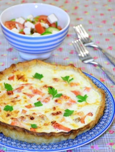 Такой киш лорен можно готовить не только с лососем, но и с семгой и любой другой красной рыбой. Наверное, и с белой тоже можно.