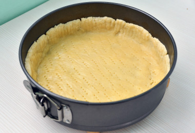 Перенесите тесто в форму и пальцами сформируйте бортики. У меня круглая, диаметром 20см. Лишнее тесто срежьте ножом.