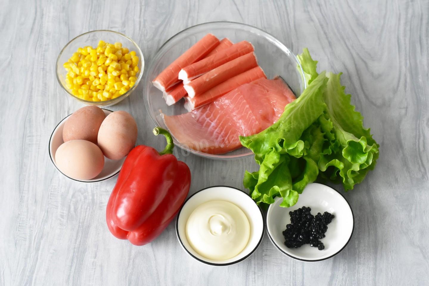 Шаг 1. Как салат Морская звезда с красной рыбой и крабовыми палочками?