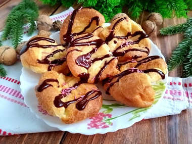 Интересно наблюдать как пудинг поднимается из формочек разными бочками). Сначала булочки были очень пышными, а после остывания слегка сдулись. Я решила полить их растопленным шоколадом. На вкус они нейтральные, поэтому начинка или топпинг нужны обязательно, как мне кажется. Можно дополнить сметаной или вареньем. Внутри пудинг похож на очень пышные оладьи. Муж сказал, что они внешне похожи на эклеры, но гораздо сочнее. Дети тоже в восторге от "пирожных"). В общем шести штучек нам оказалось мало, смели сразу же еще теплыми!
