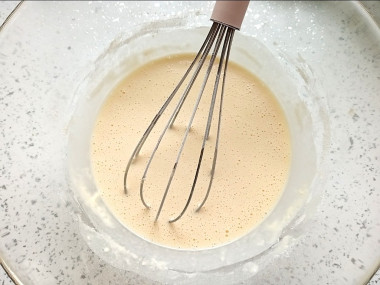 Тесто получилось такое же как на блины, оно довольно жидкое и однородное. Воспользовалась советом добавлять молоко порциями и это помогло предотвратить образование комочков.