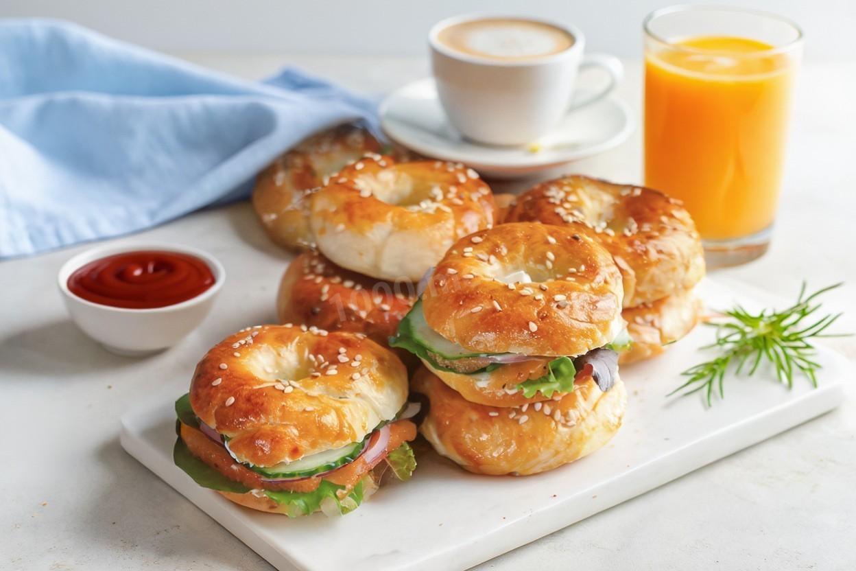 Бейглы очень похожи на наши бублики или сушки, только обычно их начиняют всевозможными вкусностями и сверху при выпечке присыпают кунжутом, маком или крупной солью. Они прекрасно подойдут в качестве перекуса, понравятся взрослым и детям.