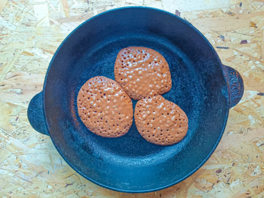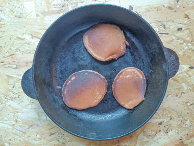Жарила панкейки на чугунной сковороде на среднем огне примерно по 1-1,5 минуте с каждой стороны.