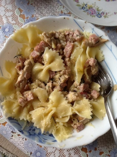 Ириша, где ты такие красивые названия берешь? Вот по истине верно сказано, у красивого человека и душа красивая - значит и у красивого названия блюда и вкус отменный, разьве не так))) Фарфалле - что -то с французскими нотками! Очень романтично! Вся