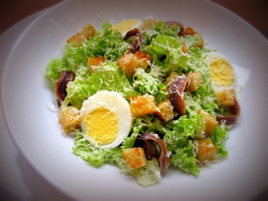 Приготовила салат Цезарь с анчоусами. Такой ариант знаменитого салата делала впервые. Очень понравился оригинальный и необычный вкус. Буду готовить еще. Спасибо автору!
