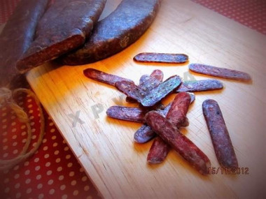 Девочки, я покупаю суджук в Харькове в крупных магазинах, мне он очень нравится, именно сыровяленный, не копченный и такой твердый, но безумно вкусный)))