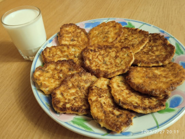 Цветная капуста у меня была из заморозки, поэтому я не отваривала её, а сразу пробила блендером в мелкую крошку. Жарила на небольшом огне, чтобы капуста успела дойти до готовности. Оладьи получились очень вкусные. Хотела подать их со сметаной, но потом решила заменить её кефиром. Ириша, благодарю за рецепт.