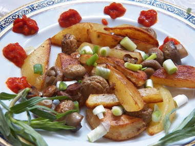 , покажу вчерашний мой рацион: это жаренная картошка с шампиньонами да с аджикой
