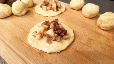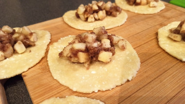 Выложите на круглую заготовку немного начинки и защипните пирожок любым способом. Я сделала классическую форму, вы можете сформировать пирожки по своему.