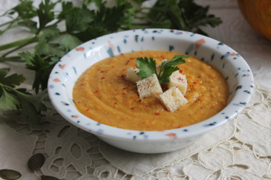 Приготовила этот крем-супчик по вашему рецепту, получился довольно вкусным, и понравился всем членам семьи. Я добавила немножко больше тыквы так как вы писали и действительно чувствовалась нотка тыквы так и чечевицы дополняя вкусы. При подаче на стол я все таки положила сливки и еще в готовый суп добавила сухарики. Вкусно! всем советую попробовать.