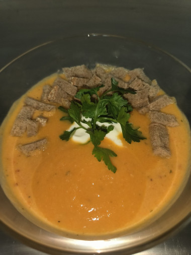 Спасибо за рецепт! Очень вкусный и красивый супчик. Так как сейчас пост,не добавляла никакого масла или сливок. И все равно очень вкусный и нежный получился.