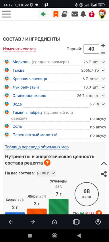 Ириша, спасибо за рецепт, очень пригодится мне для разнообразия. Чечевицу полюбила и раз в неделю обязательно готовлю супы- пюре, но так как тыква имеет очень большое содержание сахара, я ее не использую, хотя с ней и вкус и цвет намного приятнее, но увы, не для меня. А девочки пусть порадуются и полакомятся таким приятным супом!