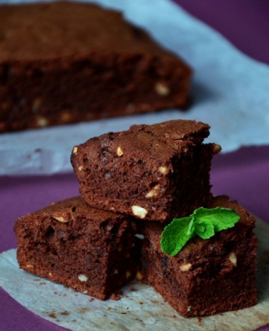 Выньте пирожное из формы и нарежьте на ровные одинаковые квадратики. Подайте пирожные Брауни к столу. Приятного аппетита!