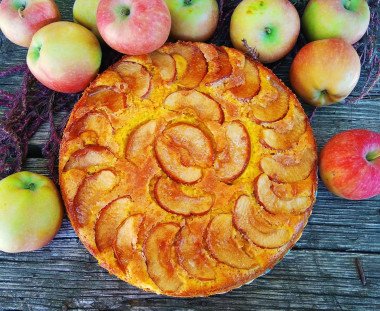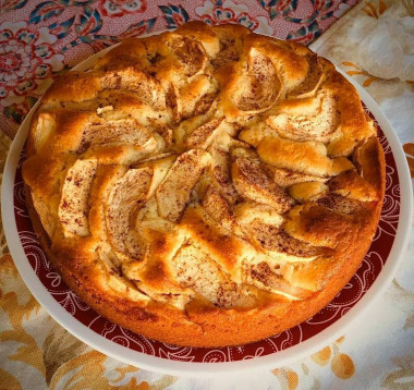 Все любят яблочные пироги) Этот пирог я пекла для своей свекрови, просто угостить. Тесто мне понравилось, оно получилось воздушным, но более масляным, чем бисквитное. Масло я растопила в мерном кувшинчике в микроволновке, а затем в него добавила холодный йогурт. Перемешала и получилась теплая смесь, таким образом и масло остыло и йогурт согрелся. Йогурт у меня домашний густой. Разрыхлителя высыпала весь пакетик (10г.), его много не будет) Яблоки не стала чистить, только вырезала серединки. Осенние яблоки попались душистые, тонкокорые и сладкие. Сверху посыпала не только корицей, но и сахаром, просто смешала все вместе. Посыпка растаяла и карамелизовалась за время выпечки, получились очень вкусные яблочки в ароматной карамели. Выпеченное тесто получилось мягким, воздушным, но при этом сочным. Пирог очень вкусный) Спасибо!
