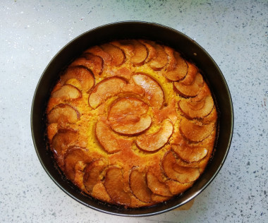 Я пекла этот пирог дважды, во второй раз часть яблок вмешала в тесто, а верхние дольки не очищала от кожуры и взяла от разных яблок - красного и зеленого. Получилось и вкуснее,и красивее.