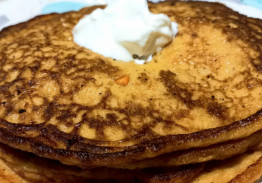 Оладьи с тыквенным пюре и яблоками на сметане - это необычность вкуса и сбалансированная полезность тыквы и яблок в одном месте.
