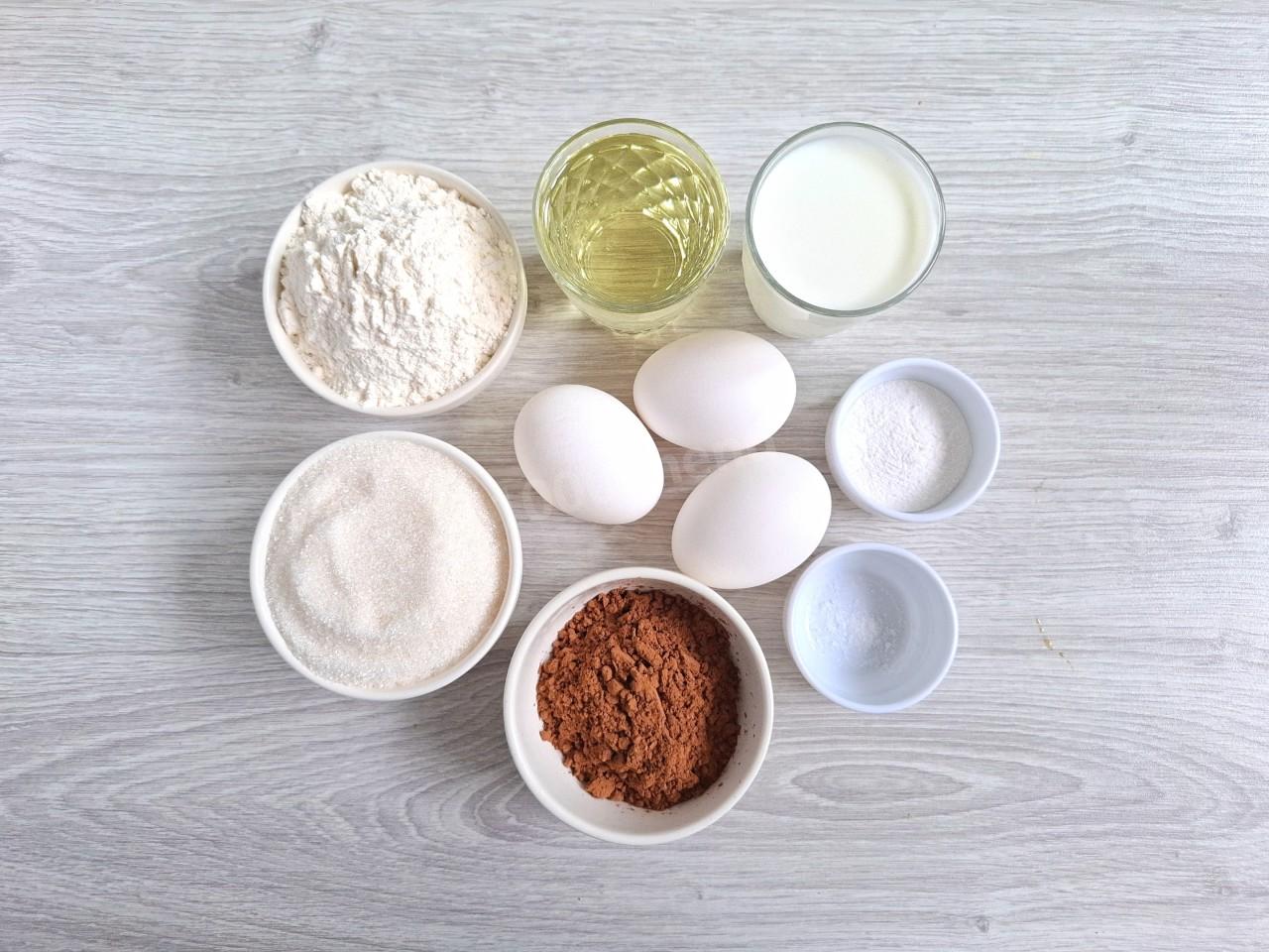 Подготовьте необходимые продукты. Молоко подойдет любой жирности, главное, чтобы оно было натуральным. Какао берите качественное, без сахара. Масло понадобится рафинированное без запаха. Количество сахара берите, ориентируясь на свой вкус. Заранее разогрейте духовку до 180℃.