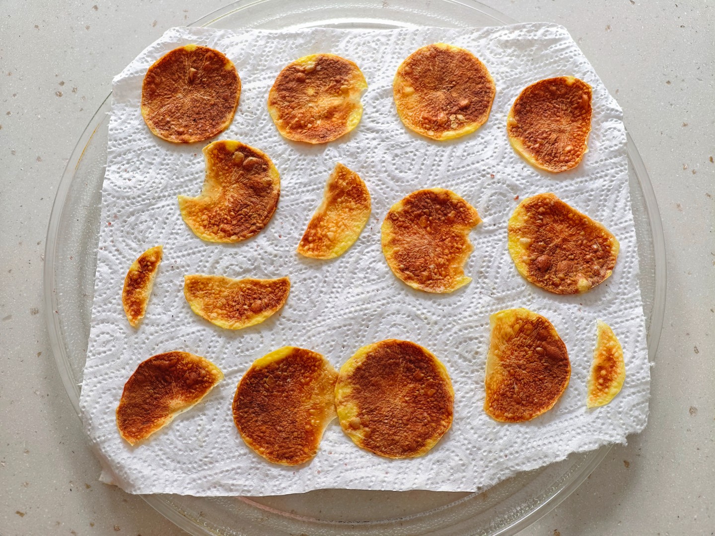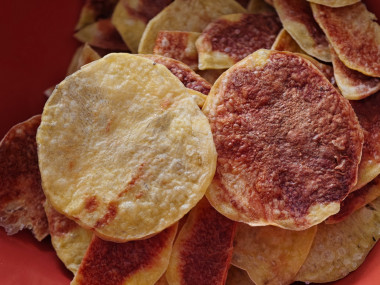 Готовые чипсы станут золотистого цвета. Переложите их на другую тарелку и угощайтесь! Они очень вкусные и хрустящие!