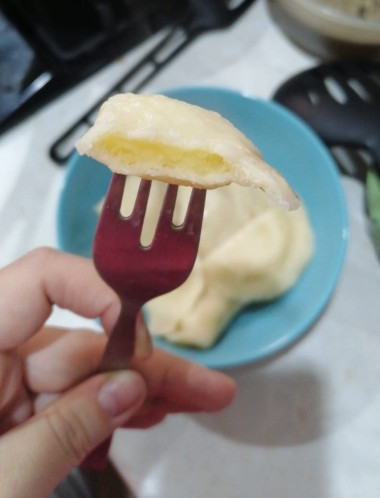 Я долго экспериментировала с тестом для вареников, чего только не делала: на воде, кефире, сметане, с яйцом или сливочным маслом. Были вкусные варианты, но идеальным тесто трудно было назвать. А когда нашла этот рецепт заварного теста - поняла: вот он, идеал. Эластичное, послушное, не липнет к столу и рукам, раскатывается тоненько-тоненько и не рвется, пельмени и вареники не слипаются после варки... Отличное тесто. Я делала вареники с тушеной квашеной капустой и грибами, с грибами и мясом, а вот сладкие еще не пробовала. Мои любимые, с вишнями, как раз на очереди)