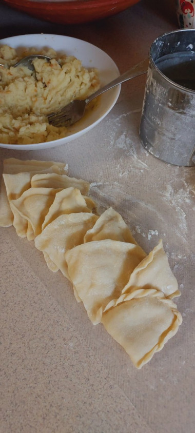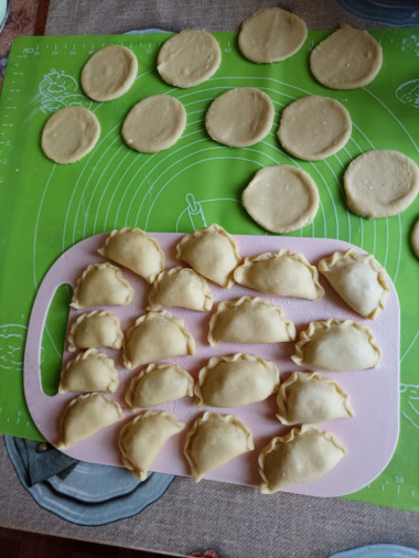 У каждой хозяйки свои вкусные рецепты. Хочу поделиться своим.Тесто для вареников и пельменей я тоже завариваю, но добавляю туда подсолнечное масло, а не сливочное. Тесто раскатываю небольшой колбаской и нарезаю на маленькие кусочки, придавливаю их в муке, стряхиваю и раскатываю на небольшие сочни и складываю их друг на дружку (приблизительно по 6 штучек на две стопки). Они тогда не сохнут и все равно выходят аккуратные. Пробовала раскатывать большим коржом, выдавливать стаканом - и в итоге :гараздо дольше, получается двойная работа , да и сочни быстро сохнут.