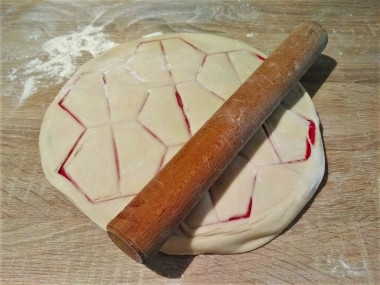 Готовое тесто получается очень податливым, оно совершенно не липнет к рабочей поверхности. Раскатайте его до толщины в несколько миллиметров.