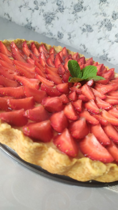 А еще можно испечь песочный пирог с желе, клубникой и манго.