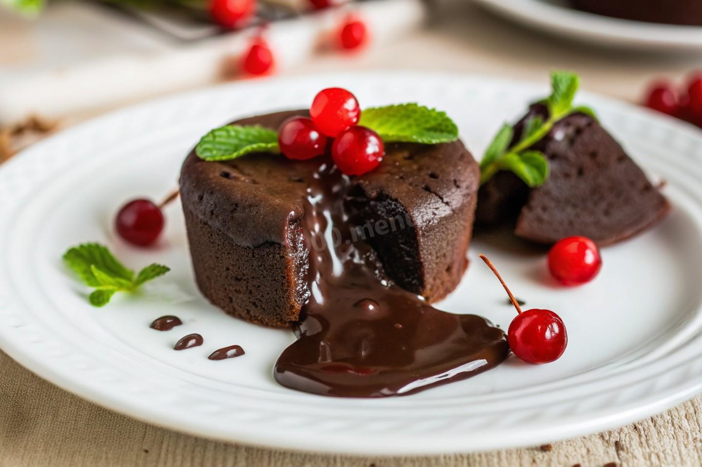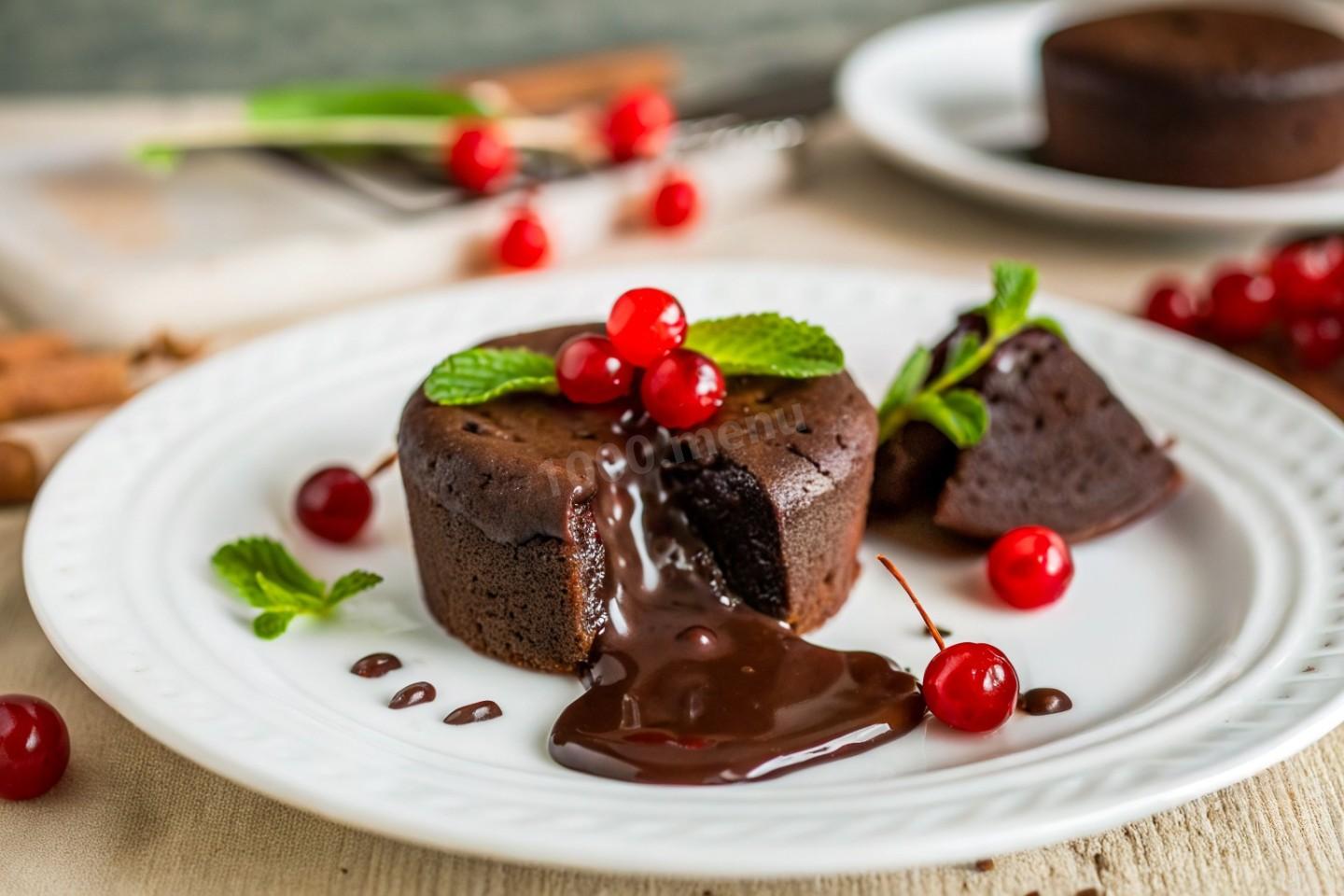Готовые фонданы переложите на блюдо и сразу же подайте к столу, украсив ягодами и мятой. При желании можете подавать с шариком ванильного мороженого. Приятного аппетита!
