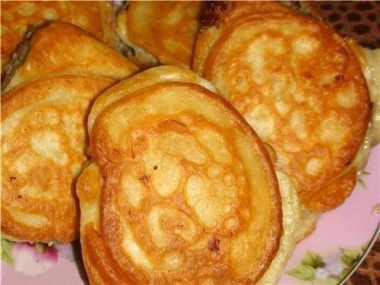 Как сделать оладьи с фаршем быстрые ленивые беляши на кефире? Очень просто! Для начала подготовьте необходимые ингредиенты для теста. Кефир должен быть комнатной температуры, поэтому заранее достаньте его из холодильника. В холодном кефире соль растворяется плохо. Растительное масло для жарки должно быть рафинированное и без запаха.