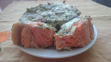 Вот и у меня приготовились "снежные сюрпризы" К рецепту присматривалась долго, смущал меня соус бешамель (жирная рыбка + жирнючий соус). Смущение никуда не ушло, а вот мысль заменить на пикантный йогурт пришла