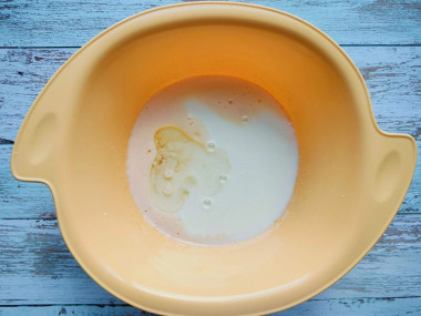 Добавьте в чашу кефир и 40 мл растительного масла.