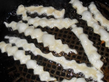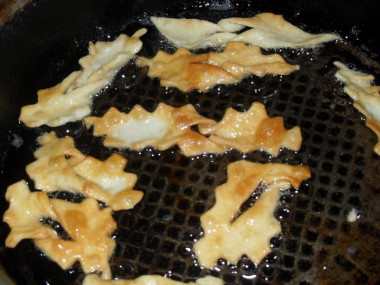 Обжаривайте хворост с двух сторон до румяного цвета.