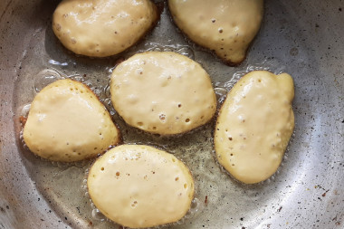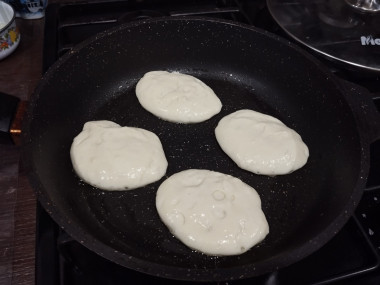 Жарьте оладьи с двух сторон до золотистой корочки.