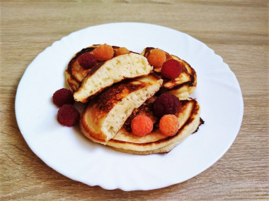 Готовые пышные оладьи на простокваше переложите на тарелку и подайте к столу горячими. Приятного аппетита!