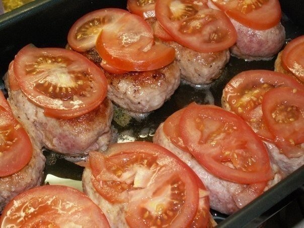 Шаг 4. Как запечь котлеты под шубой в духовке с помидорами?