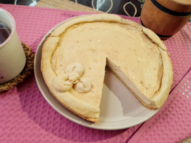 Пирог получился очень ароматным и вкусным и сытным. С чаем он был на расхват! И даже сын, который творог не всегда жалует (благодаря присутствию в нем банана) ел пирог с удовольствием!