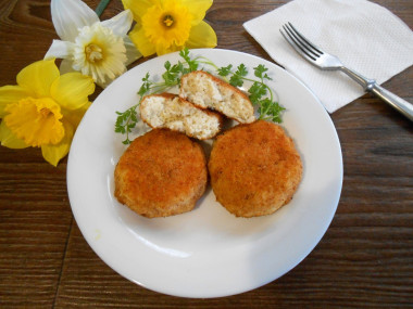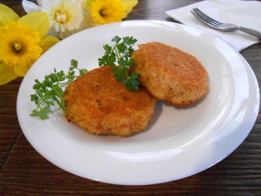 Готовые котлеты переложите на блюдо и подайте к столу, пока они горячие. К котлетам подойдет абсолютно любой гарнир, но особенно вкусно получается с отварным картофельным пюре. Приятного аппетита!