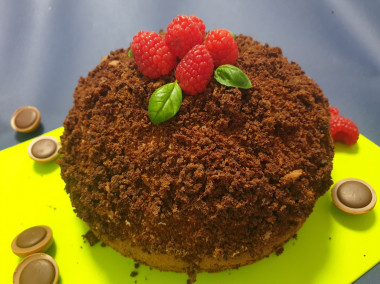 Обсыпьте торт сверху бисквитной крошкой, слегка ее прижимая. Уберите торт в холодильник, чтобы крем загустел.