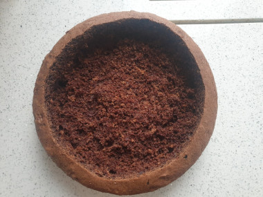 Как сформировать торт? Лезвием ножа, отступив от края бисквита 1,5-2 см, очертите круг. Извлеките из бисквита мякиш, оставляя дно толщиной не менее 1 см.