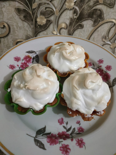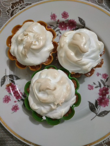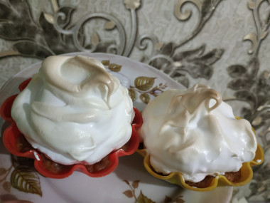 Сверху с помощью кондитерского мешка или просто ложкой выкладываем меренгу.
