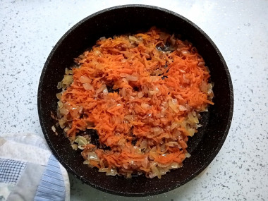 На сковороде разогреваем масло, обжарьте лук несколько минут, добавьте чеснок и жарьте еще 2-3 минуты.