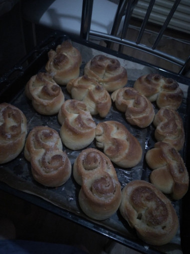 Благодарю за рецепт! Булочки очень вкусные, тесто отличное! Пекла первый раз в жизни булочки! Только по мимо сахара я добавила ещё корицу)