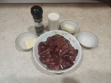 Как сделать куриную печень в сливках на сковороде? Для начала подготовьте необходимые ингредиенты по списку. Куриную печенку можете заменить на печень индейки, свиную или говяжью. Печенку можете брать свежую или замороженную. Замороженный продукт необходимо предварительно разморозить на нижней полке холодильника.
