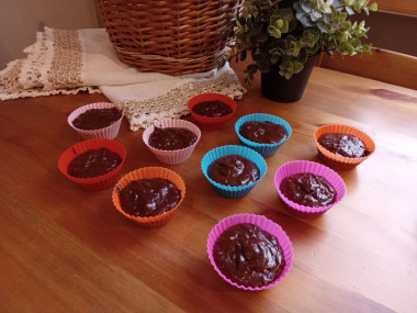 Внесла небольшие корректировки в рецепт, когда готовила: добавила в тесто побольше какао-порошка и взяла два яйца вместо одного.