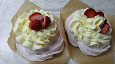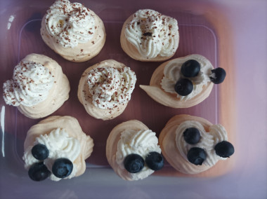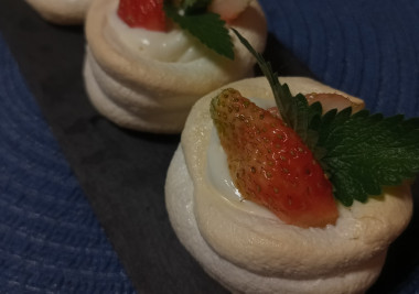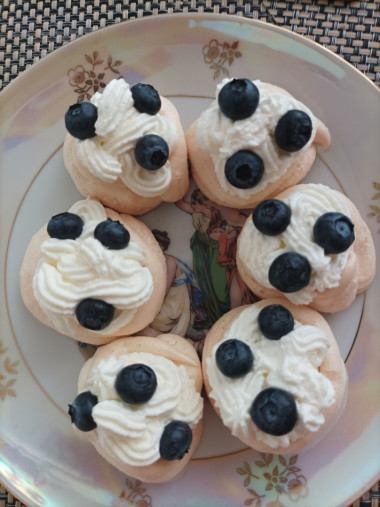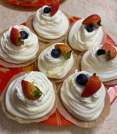 Спасибо за такой детальный рецепт! Он так четко описан, что позволяет приготовить идеально с первого раза. У меня не было кукурузного крахмала и лимонного сока, и замена кукурузной мукой и яблочным уксусом прошла на ура. И т.к. мне нравится пирожные на "один укус" - съел и забыл, я их сделала маленькими. Одни с черникой, а в другие положила "пьяную" вишенку и посыпала шоколадом. Главный дегустатор сказал: "Павлова полезная, ее надо каждый день готовить".