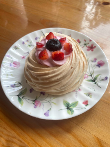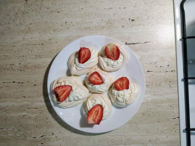 Десерт можно приготовить и на швейцарской меренге, хотя этот способ более трудоемкий. При желании в крем можно добавить сливочный сыр для большей плотности, а в основание меренги положить ягодное конфи.