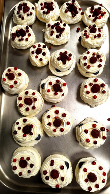 Результат превзошел все мои самые смелые ожидания! Нежные, хрустящие снаружи и тающие во рту меренги, как облачка. Крем получился легким, воздушным и идеально дополнил сладость безе, не перебивая ее. А свежие ягоды, словно драгоценные камни, рассыпались на вершине каждой мини-Павловой, добавив яркие краски и освежающую кислинку.
