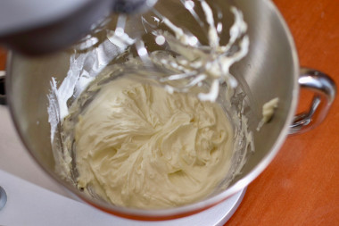 В миску влейте холодные жирные сливки и взбейте, постепенно увеличивая скорость и подсыпая сахарную пудру до плотных пиков. При переворачивании миски правильно взбитые сливки останутся в ней. Очень важно не перевзбить сливки, иначе они расслоятся и у вас получится масло.