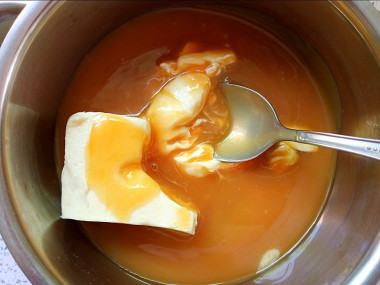 Сливочное масло растопите и добавьте к нему вареную сгущенку. Будет достаточно как раз одной банки.