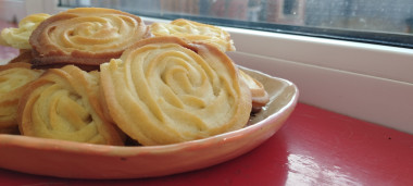 Спасибо за рецепт, такие завитки получились. Оптимальные пропорции ингредиентов указаны, ровно на одну порцию к семейному чаепитию. Просто, красиво и со вкусом! Джем не добавляла (дети его не едят), но сама структура печенья, действительно, рассыпчатая, чего и требует песочное печенье. Масло брала, по совету автора, комнатной температуры, поэтому отлично удалось соединить ингредиенты, замешиванием не увлекалась, чтобы не забить массу (сверялась по консистенции с фото). Как итог - хрустящий десерт удался, спасибо за все описанные тонкости.