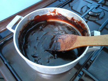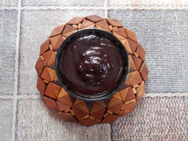 У меня почему-то получился кисель. Минут 20 уваривала, чтобы было погуще,(больше сил не хватило, руки отвалились мешать все время), но все равно такой консистенции шоколадной не получилось. Можно съесть просто так, ложкой. Вкусно.